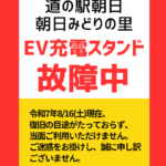【道の駅朝日】EV急速充電スタンド故障のお知らせ(R7/8/16)